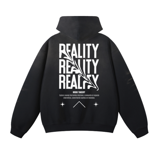 42🚀 Reality^ Washed Dyed Fleece Black Hoodie